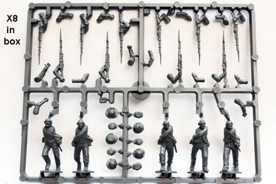 The figures in this box represent a Confederate infantry regiment form 1862 onwards although there are a fair amount of units that can be depicted from 1861 too. They are all represented in short jackets typical of the entire Confederate Army from mid-1863. Both caps and broad-brimmed hats are included for all figures as some regiments adopted the hat and others the cap, although most had a mix. All figures have separate arms to allow you build the regiment at ‘right shoulder shift’ or at the charge.