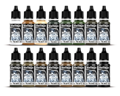 Vallejo Model Colour is an extensive range of paints designed for painting scale miniature kits. Vallejo Model Color is designed to be lightfast, waterproof (once dry), provides a smooth coat with minimal brushstrokes, and dries to an opaque finish (except transparent and fluorescent paints).