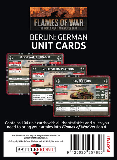 104 unit cards with the statistics and rules for all the units in the D-Day: German book