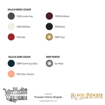 Smartly dressed in sombre dark uniforms the ranked columns of Prussian infantry marched steadily to face Napoleon. Even after suffering a bitter defeat Ligny, in the midst of retreat, the disciplined professional soldiers were still able to muster their resolve and turn to England's aid, falling on Napoleon's flank at the pivotal moment during the Battle of Waterloo.