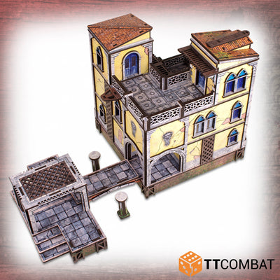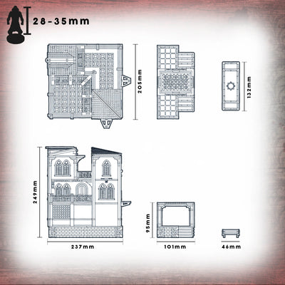 The Casa Asimmetrica kit is made from 3mm Pre-Coloured MDF using hard-wearing UV Ink. While it was designed for Carnevale, it will work perfectly with other 28-32mm games and miniatures.