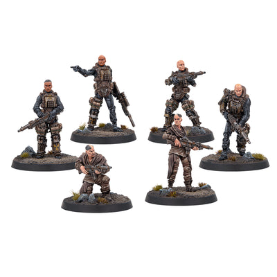 This Fallout: Miniatures set contains six 32mm scale high-quality multi-part resin miniatures with plastic bases and alternative heads and weapons.