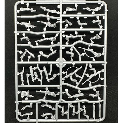 Freeze, flee, or fight? This hard plastic box set lets you build them all! Two unique frames give you six unique bodies that you can customize to either hold weapons, open handed in flight, or you can even turn some into sign-holding protesters!