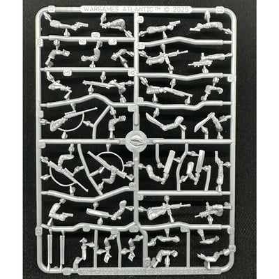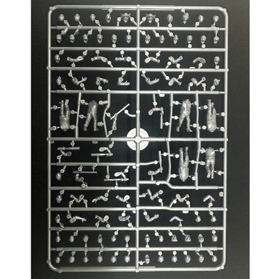 This hard plastic box set includes enough parts to build 24 28mm figures. There are six unique bodies, enough arms to make all of them fleeing, enough arms to have 1/2 the box holding signs, and a huge mix of weapon arms. Weapon arms include: broken bottles, baseball bats, cricket bats, machetes, double barreled shotguns, semi-auto shotguns, pump shotguns, AR-15s, automatic pistols and revolvers, Uzis, and hunting/sniper rifles. And to top it off there are 55 unique heads with a total of 220 heads in the box!