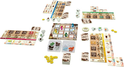 Navigate a shared grid to collect ingredients each round, turning them into completed drinks that earn rating points. Fulfilling three orders allows you to flip upgrade tiles to enhance ingredient collection or movement. The game ends when the order deck depletes or a player receives five penalty cards. Highest rating wins.