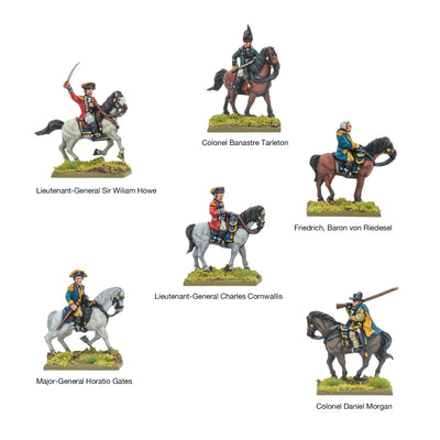Lead your troops to glory in the American War of Independence with this stunning set of six Warlord Resin miniatures, depicting legendary leaders from both sides of the conflict. The Black Powder Epic Battles: Revolution! Commanders Boxed Set is ideal for adding character, leadership, and tabletop authenticity to your armies.