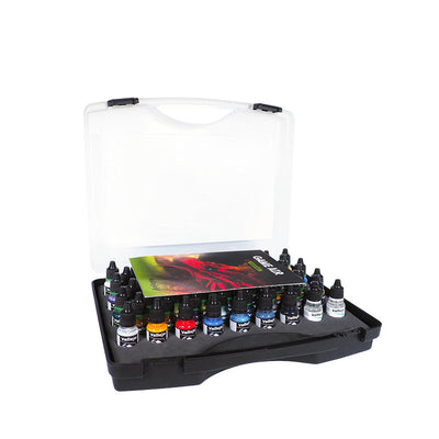 This case contains 51 range colors and 7 primers with a matte finish and exceptional adherence. It also includes two auxiliary products to optimize airbrush application. Enjoy the full range of Game Air products in this handy hard plastic case with a capacity of 60 bottles of 18 ml/0.6 fl oz.