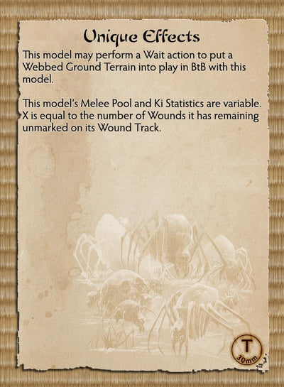 When you’re afraid of the spider, there’s few things worse than a huge eight legged, venomous, pitiless hunter, focusing on you with its many hunter’s eyes… But hundreds or thousands of them, all working with collective malice is certainly an arachnophobe’s personal hell. As well as the many abilities which create these models in game, which players of the Awoken have been wondering about for some time; these are a solid swarm model. In particular, being able to gain health with the Kumo Trait on a Durable swarm makes for a great model.