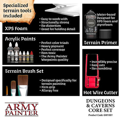 Whether you descend into murky caverns or tread the pass of ancient Dwarf mines - the GAMEMASTER: Dungeons & Caverns Core Set allows you to create any setting for your roleplaying party. Both fun and extremely easy to build, this set has absolutely EVERYTHING you need to build any subterranean setting - for any RPG system or skirmish miniature game. Armed with specially manufactured XPS foam board and a versatile hot wire cutter, go crazy and don’t let anything but your imagination hold you back! Find inspiration in our many online tutorial videos, or the inspirational guide included in this set, to conjure up any dungeon or cavern complex you might want. Do it yourself or with your party - once you cut and create your first magic portal, you’ll never look back!