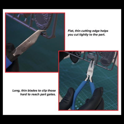 These incredibly sharp precision clippers have been designed specifically for cutting parts from our hard plastic frames. The angle, thinness, and length of the cutting edge has been fashioned to reach between tight part placement and then give you a clean, solid cut as close to the part as possible. The ergonomic handle is non-slip with a comfortable pull. Use these in conjunction with our Hard Plastic Nano Files to expertly prepare your models for painting.