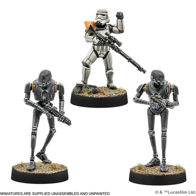 This expansion for Star Wars™: Legion contains 7 finely sculpted Imperial Riot Control Squad miniatures, enough for one Corps unit, along with new unit and upgrade cards to ensure peace and prosperity across the galaxy. The squad brings a mix of solid ranged combat using its e-11s with stronger durability and close combat power thanks to its electro batons and the protection offered by the squad's riot shields.