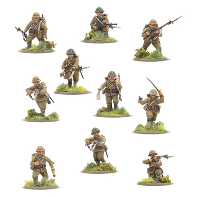 This box contains 30 infantry models allowing you to build a huge variety of Japanese infantry units. On each sprue, you’ll find a wide range of weaponry, including Type 99 Arisaka Rifles, a Type 99 LMGs, a Type 89 Grenade Dischargers (also known as ‘knee mortars’), lunge mines, swords, and more besides. There’s also a Type 92 Machine Gun enabling you to represent a Medium Machine Gun Team (we’ve included a trio of 60mm bases to help with such an endeavour!), and plenty of extra pieces to customise your troops further. Most crucially a variety of heads and gear is included that allow you to represent not only troops of the Imperial Japanese Army, but also those of the Special Naval Landing Forces, or Veteran Jungle Fighters and take advantage of the Yamato Damashii special rule!