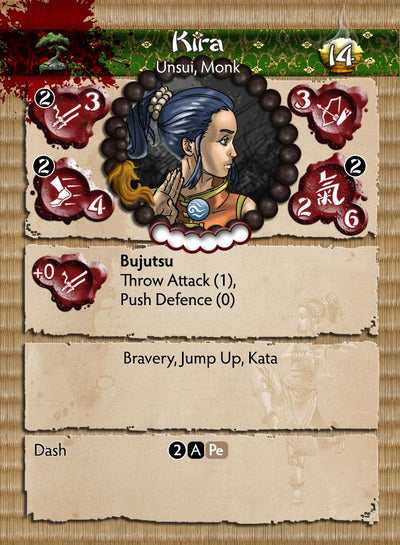 Hotaru thanks the Kami’s for guiding her to the Temple of Ro-Kan and Master Ekusa. She has learned to contain her powers but still fears unleashing her full potential. Hotaru’s desire to control her innate abilities provides little comfort for opponents left ablaze by her fiery attacks. The Temple have found a welcome addition to their order in Hotaru.