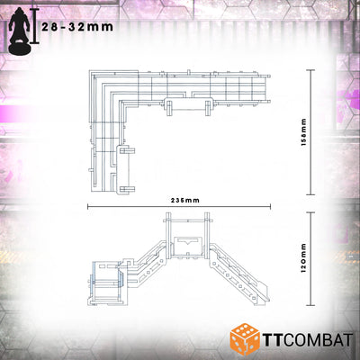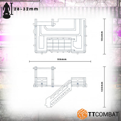 This kit is made from 3mm MDF. It is a great scenery kit to use in Sci-Fi skirmish games, will work perfectly with 28-32mm games and miniatures, and look great on any Sci-Fi inspired game board.