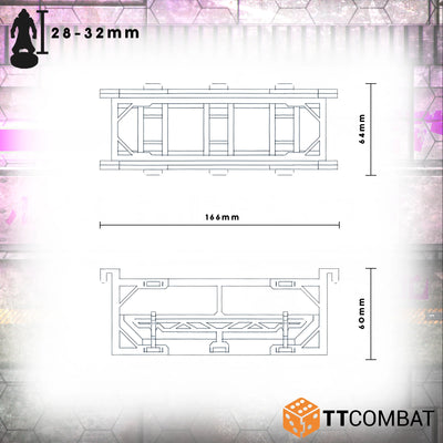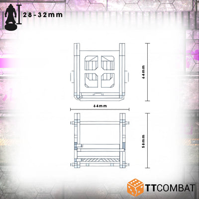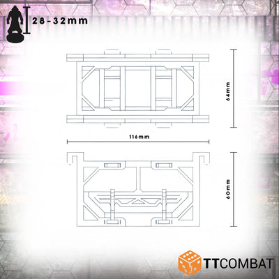 This kit is made from 3mm MDF. It is a great scenery kit to use in Sci-Fi skirmish games, will work perfectly with 28-32mm games and miniatures, and look great on any Sci-Fi inspired game board.