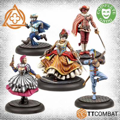 This box contains a complete Gifted gang, full of unique characters. La Signora leads by example, letting everyone know where she is at all times. Mezzetino is in town looking for a good fight, where as Scapino simply wants to have fun and not get caught. Coviello has a tune to play, and you’d better listen. And spare a thought for the Innamorati - two lovers ripped apart by the calamity and reunited below the deranging Rent in the Sky.